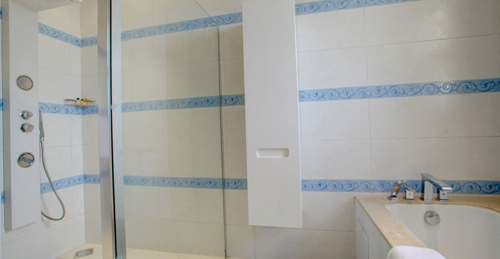 Indulge in the epitome of relaxation in the guest bathroom, elegantly designed to offer a luxurious experience. The attention to detail is evident in every corner of this penthouse, ensuring a seamless blend of functionality and beauty.